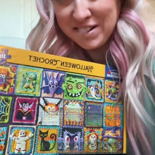 Whether you're a puzzle enthusiast, a crochet lover, or just a Halloween fan, this vibrant jigsaw is perfect for cozy fall nights, family game time, or a fun seasonal display.